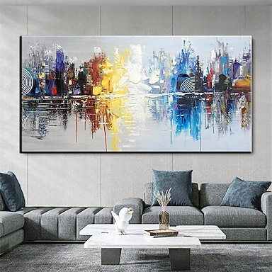 Dipinto a mano, arte da parete, grande città, architettura, paesaggio, pittura a olio, città colorata, impressioni murali, città moderna, struttura su tela, decorazione domestica, pronta da appendere