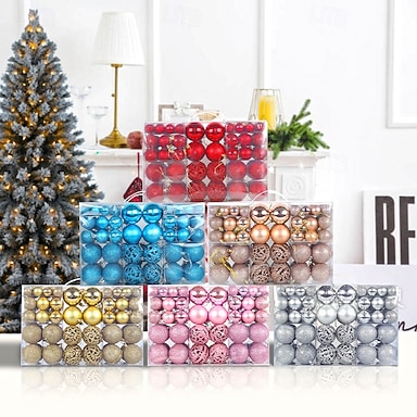 100 palline per albero di Natale, ornamenti, decorazioni natalizie, sfere rotonde cave lucide, set di scatole regalo per la disposizione delle scene delle feste natalizie, accessori per decorazioni da