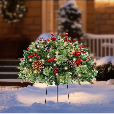 decorazioni pre-illuminate per albero di Natale da esterno da 24" con luci, cespugli pre-illuminati con telecomando, riempitivo per urna natalizia per portico anteriore, giardino, decorazioni per le