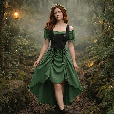 Medievale Rinascimento Fiabesco Vestito Maniche corte Principessa Fata Allacciato Collo quadrato Costume Per donna Fantasia Halloween Carnevale Mascherata Fiera Rinascimentale Festa a tema retrò