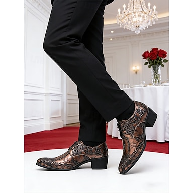 scarpe eleganti da uomo in similpelle marrone con motivo coccodrillo, scarpe da sposa di alta qualità per sposi e invitati attenti alla moda