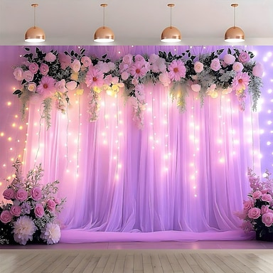 Arazzo floreale romantico per San Valentino, stampa piatta 2D, decorato con luci LED calde, sfondo perfetto per una bella decorazione per feste e un'accogliente atmosfera per San Valentino