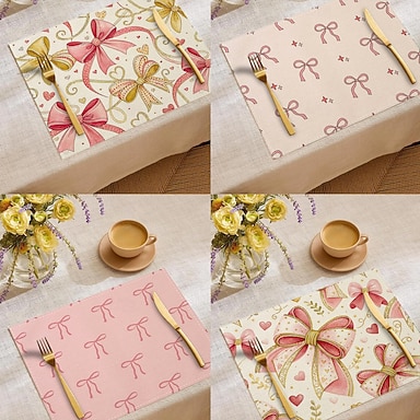 Tovaglietta in poliestere con stampa a fiocco rosa, lavabile e antiscivolo, ideale per il tavolo da pranzo, resistente al calore e perfetta come copritavolo da cucina, un complemento d'arredo moderno,
