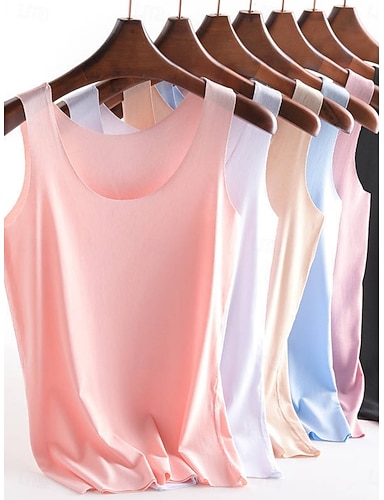 Per donna Canotta Top aderente Tunica Tinta unica Elegante Caldo Casual Senza Maniche Spalline Top corti Quotidiano Sportivo Uscire Nero Bianco Giallo Rosa Blu marino Estate Primavera