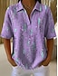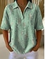 Per donna Camicia Finto cotone e lino Stampato Astratto Quotidiano Casual Manica 3/4 Girocollo Top Regolari Quotidiano Ferie Blu Bianco Verde Estate Primavera Autunno