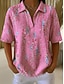 Per donna Maglietta Stampato Floreale Grafico Piante Vintage Elegante Casual Manica Corta Scollo a V Top Regolari Quotidiano Weekend Blu Giallo Rosa Vino Rosso Estate Primavera