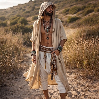 Per uomo Camicia di lino Camicia Estiva Camicia casual Camicia da Spiaggia Bolero Colore Solido / Tinta Unita Casuale Abbigliamento casual alla moda Albicocca Manica Corta Con Cappuccio Estate