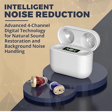 Apparecchi acustici ricaricabili per anziani - coppia di amplificatori sonori personali digitali in-ear con qualità audio superiore, riduzione intelligente del rumore e indicatore di carica. &durata