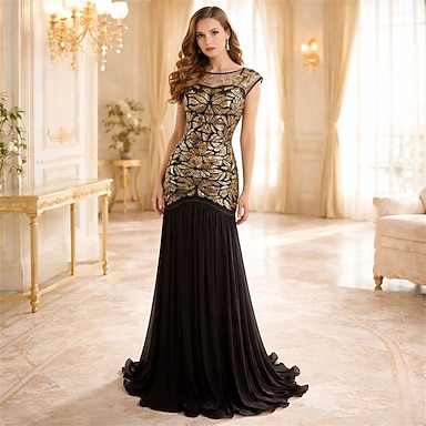 Anni Ruggenti Anni 1920 Lunghezza alla caviglia Vestito Abito da sera Abito da Ballo Senza maniche Il grande Gatsby Invitato al matrimonio Paillettes Patchwork Scollo Tondo Costume Per donna