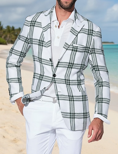 Da uomo Giacca Leggera Giacca Estiva Casuale All'aperto Monopetto Estate Primavera Poliestere Plaid Quadri Di tendenza Monopetto Giacca BiancoA BiancoB Giallo
