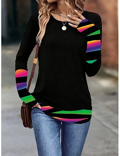 Per donna Maglietta Stampato Grafico Geometrico Geometria Vintage Elegante Classico Manica Lunga Girocollo Top Regolari Quotidiano Weekend Nero Autunno Inverno