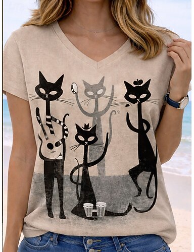 Per donna Maglietta Stampato Grafico Animale Lettera Elegante Classico Casual Manica Corta Scollo a V Top Regolari Casuale Quotidiano Bianco Rosso Verde Estate Primavera
