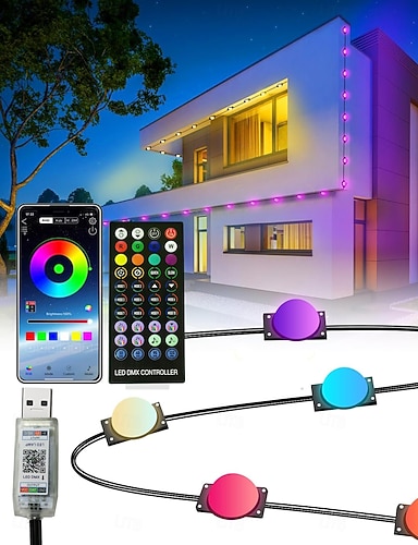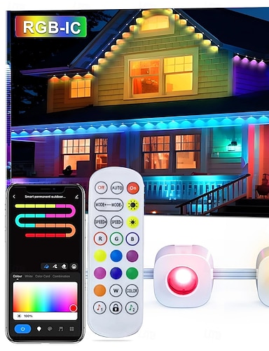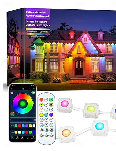 Luci LED a Stringa Downlights Eternity Luci Permanenti Esterne con App e Telecomando 2.4G Luci RGBIC Intelligenti Grondaie Impermeabili IP67 per Casa Tetto per 30LEDs 50ft Estensibili