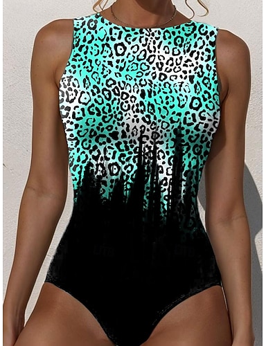 Costume da bagno intero da donna snellente leopardato monokini controllo pancia alta vita snellente senza schiena vacanza beach wear scollo a V senza maniche