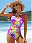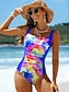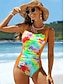 Costume da bagno intero da donna snellente boho monokini slip controllo pancia alta vita snellente senza schiena vacanza beach wear grafica ombre scollo rotondo senza maniche