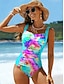 Costume da bagno intero donna monokini snellente arricciato taglio alto controllo pancia alta vita senza schienale per le vacanze beach wear grafica ombre scollo a U senza maniche