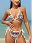 Per donna Costumi da bagno Bikini Tre Pezzi Perizoma Costume da bagno Snello Senza schiena Vacanza Abbigliamento da Spiaggia Lettera Girocollo Senza Maniche Maniche Corte Costumi da bagno
