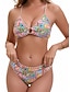 Costume da bagno tre pezzi bikini da donna palme controllo della pancia snella senza schienale abbigliamento da spiaggia floreale foglie scollatura a V senza maniche