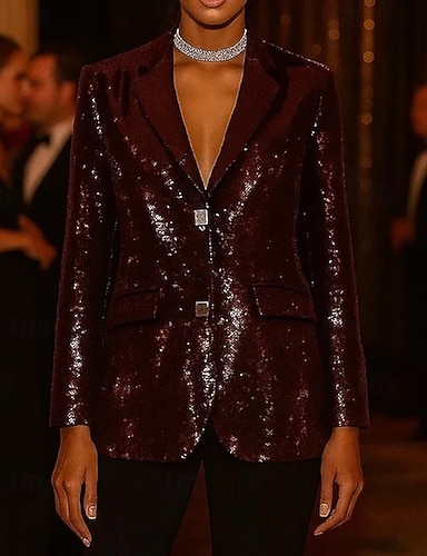 Per donna Blazer Giacca Sportiva Feste Matrimonio Formale Con Paillettes Elegante Brillanti Manica Lunga Bavero sciallato Doppiopetto