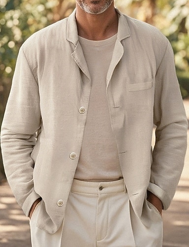 Per uomo Giacca Leggera Giacca blazer Blazer di Lino Formale Ufficio Autunno Cotone e Lino Tinta unica Comodo Monopetto Giacca Verde chiaro Blu marino Marrone Kaki