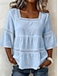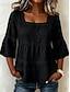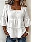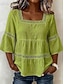 Per donna Blusa Bordo in pizzo Tinta unica Quotidiano Elegante Essenziale Manica 3/4 Collo quadrato Top Regolari Casuale Quotidiano Blu Nero Bianco Verde Estate Primavera