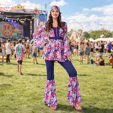 Set Retrò Vintage Anni '70 Blusa / Camicia Pantaloni Lunghe Floreale Psichedelico Costume Per donna Halloween Carnevale Festival Musicale Festa a tema retrò Adulti Bluse Pantaloni Estate Tutte le