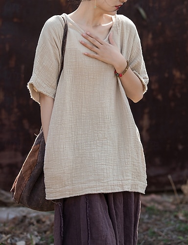 Camicie da donna 100% cotone, bluse semplici, casual, maniche corte, scollo a V, top classici, per tutti i giorni, vacanze, uscite, neri, marroni, beige, estivi, primaverili, autunnali