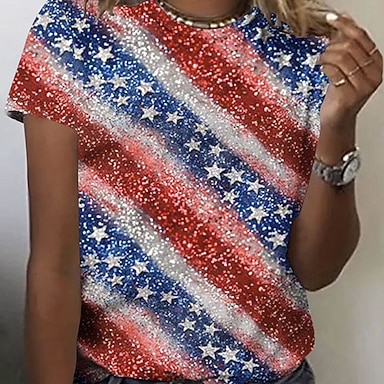 costume da bagno da donna per il giorno dell'indipendenza, costume intero sgambato, abbigliamento da spiaggia, estivo, con bandiera grafica, scollo a U, senza maniche