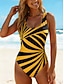 Per donna Costumi da bagno Intero Mutande Costume da bagno Abbigliamento da Spiaggia Estate Grafico A righe Collo a U Senza Maniche Costumi da bagno