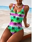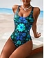 Per donna Costumi da bagno Intero Mutande Costume da bagno Abbigliamento da Spiaggia Estate Grafico Tropicale Collo a U Senza Maniche Costumi da bagno