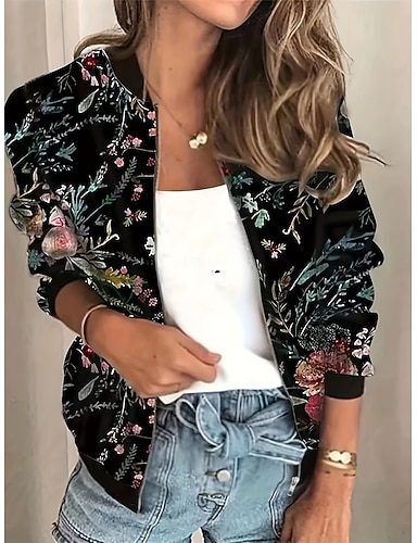 Giubbotto bomber da donna caldo ad asciugatura rapida tasca con cerniera elegante moda quotidiano semplice floreale vacanza casual quotidiano festivo corto colletto da baseball vestibilità regolare