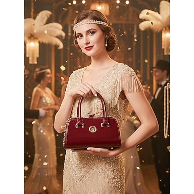 Borsa a mano da donna in similpelle verniciata color bordeaux - borsa tote strutturata con stampa coccodrillo, manico superiore e tracolla, perfetta come regalo per la festa della mamma, ufficio, lavoro e occasioni formali