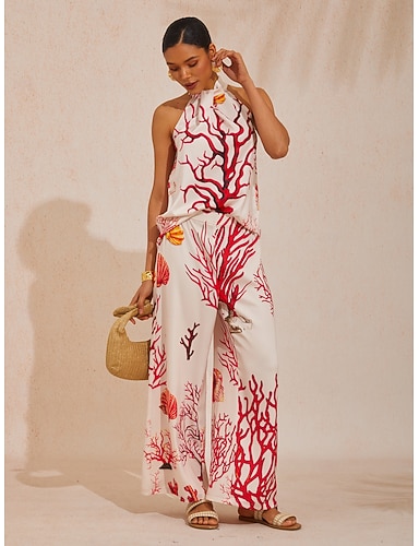 Per donna Top in raso Top con scollo all'americana Canotta Maglietta senza maniche Nodo da legare Grafico Geometrico Moda Classico Casual Senza Maniche Top con spalle scoperte Top Regolari Quotidiano