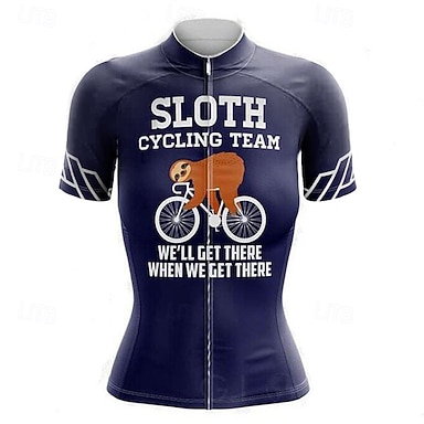 Per donna Maglia da Ciclismo Lettere & Numeri Divertente bradipo Manica Corta Bicicletta Maglia Top con 3 tasche posteriori Mountain Bike MTB Ciclismo su strada Asciugatura Rapida Strisce Riflettenti