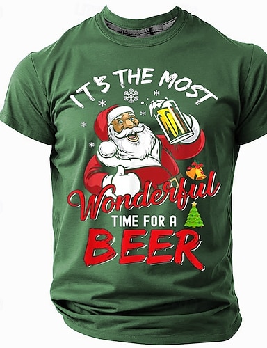Natale Per uomo Babbo Natale Brutto Natale Muro crepato Camicia Camicia con Bottoni Manica Lunga Vintage Retrò All'aperto Ferie Primavera Autunno Collo ripiegato Stampa 3D Camicia tipo lino Verde