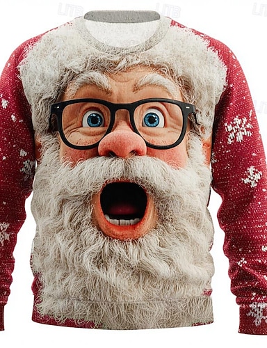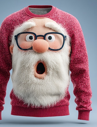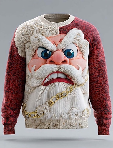 Maglione di Natale brutto Per uomo Babbo Natale Stampa 3D Maglione Maglieria Girocollo Casual All'aperto Regali di Natale Vacanza Tenere al caldo Manica Lunga Autunno Inverno Rosso Blu Viola