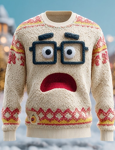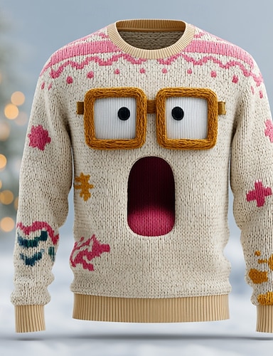 Maglione di Natale brutto Per uomo Grafico Stampa 3D Maglione Maglieria Girocollo Casual Vacanza Quotidiano Festival Stampa 3D Tenere al caldo Manica Lunga Primavera Autunno Inverno Aalbicocca
