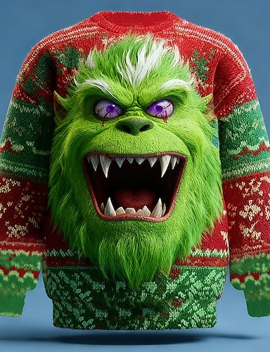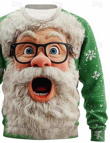 Maglione di Natale brutto Per uomo Babbo Natale Stampa 3D Maglione Maglieria Girocollo Casual All'aperto Regali di Natale Vacanza Tenere al caldo Manica Lunga Autunno Inverno Rosso Verde