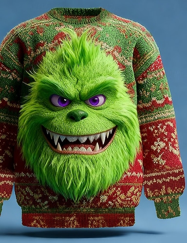 Maglione di Natale brutto Per uomo Stampa 3D Personaggio dei cartoni animati Maglione Maglieria Girocollo Casual Vacanza Quotidiano Festival Tenere al caldo Manica Lunga Primavera Autunno Inverno
