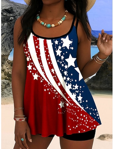 Per donna Costumi da bagno Tankini Due pezzi Vita alta Costume da bagno Controllo della Pancia Vita alta Snello Senza schiena Vacanza Abbigliamento da Spiaggia Ombre Collo a U Senza Maniche Costumi