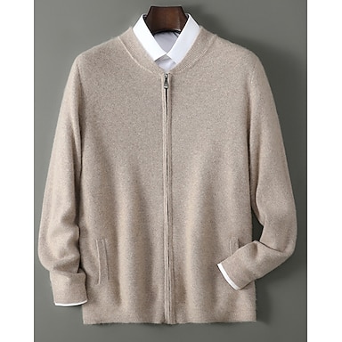 maglione cardigan da uomo in pura lana e cashmere di alta qualità con cerniera, classico, tasca in maglia, morbido, caldo e traspirante