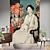 Arazzo da parete vintage con signora vittoriana e cane bianco, elegante donna in abito bianco con fiori rosa, ritratto classico, decorazione da appendere per soggiorno, camera da letto, parete