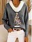 Natale Per donna Camicia Gatto Albero di Natale Casual Manica Lunga Scollo a V Top Regolari Quotidiano Patchwork Stampato Nero Blu Grigio Primavera Autunno Inverno