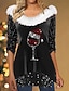Natale Per donna Blusa Fiocco di neve Bicchiere di vino Elegante Casual Manica Lunga Senza Spalle Top Regolari Quotidiano Ferie Nero Bianco Vino Rosso Primavera Autunno Inverno