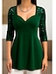 Natale Per donna Blusa Tinta unica Elegante Casual Manica Lunga Scollo a V Top Regolari Quotidiano Paillettes Patchwork Nero Rosso Blu Reale Verde Primavera Autunno Inverno