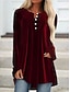 Blusa in velluto da donna Colore solido Elegante Stile base Manica lunga Scollo a V Magliette regolari Quotidiano Bottoni neri marroni primavera autunno inverno