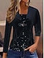 Natale Per donna Blusa Floreale Elegante Casual Manica Lunga Girocollo Top Regolari Quotidiano Paillettes Patchwork Stampato Argento Vino Viola Fucsia Oro Primavera Autunno Inverno