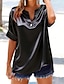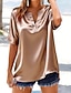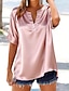 Per donna Camicia camicetta di raso Camicia elegante Tinta unica Semplice Vacanza Vintage Moda Manica Corta Scollo a V Top Regolari Quotidiano Abbigliamento casual alla moda Lavoro Blu Nero Rosa