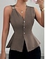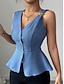 Per donna Camicia Blusa Maglietta senza maniche Bottoni Semplice Elegante Classico Moderno Senza Maniche Scollo a V Top Regolari Quotidiano Ferie Uscire Blu Cammello Estate Primavera