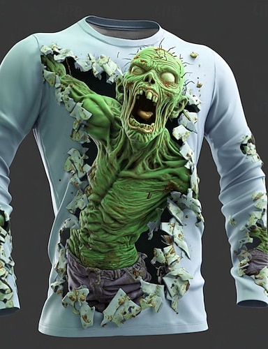 Per uomo Zombi 3D Maglietta Manica Lunga maglietta Stampa 3D Girocollo Camicia Moda Esagerato Streetwear Casuale Quotidiano verde 1# Verde 2# Rosa Estate Primavera Autunno Abbigliamento S M L XL XXL